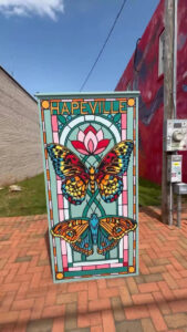 Step into a world of color and creativity with the newly unveiled Hapeville Photobooth. This vibrant community mural, masterfully designed by artist Katelin Colburn, was brought to life during the Butterfly Parade. Located on Main Street in the alley next to Lat Johns Pilates, this unique photobooth is ready to capture your smiles.